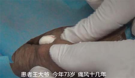我們抗風(fēng)竤醫(yī)療機構(gòu)經(jīng)過不斷的探索、研究,總結(jié)了一套無需手術(shù)的新療法治療痛風(fēng)石。經(jīng)過我們的治療,痛風(fēng)石會變軟液化。有的通過皮膚表面直接排出體外,有的通過人體的代謝,由腎臟和腸道排出體外,從而達到治療痛風(fēng)石的目的。