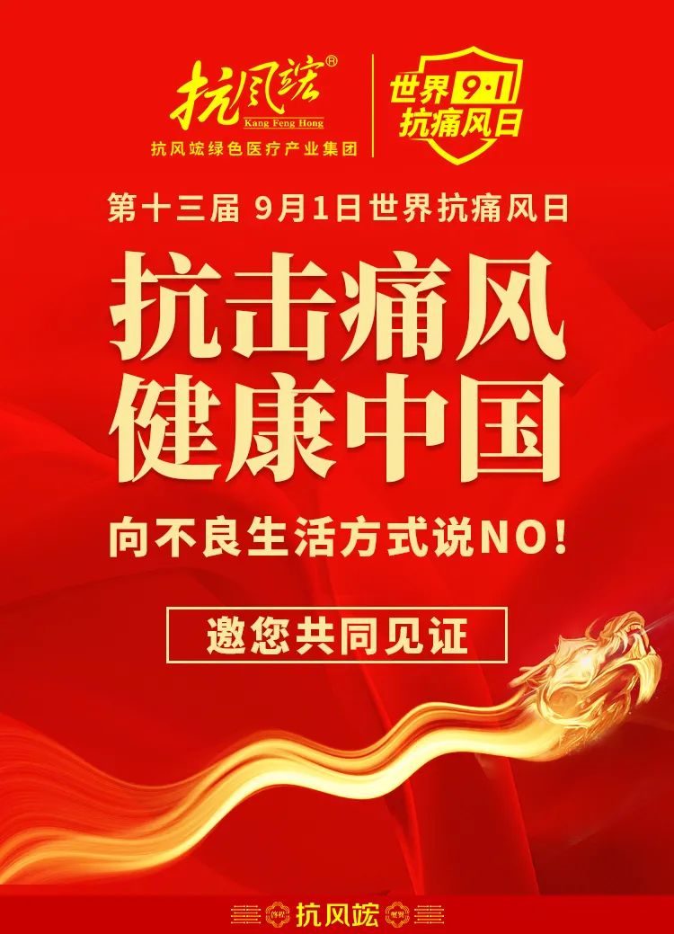 2011年9月1日,沈陽抗風(fēng)竤(綠色)醫(yī)療產(chǎn)業(yè)管理集團(tuán)董事長張汭鈞先生首次發(fā)出倡議,定于每年的9月1日為“世界抗痛風(fēng)日”,呼吁全社會關(guān)注痛風(fēng),倡導(dǎo)世人用健康的生活方式遠(yuǎn)離痛風(fēng),用綠色、安全的非藥物療法抗擊痛風(fēng)!